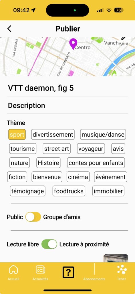 - Et là, vous avez le choix : si vous voulez que tout le monde puisse voir votre figure depuis son canapé, optez pour « Lecture libre » ; si vous estimez que seuls les gens qui passent sur ce Spot auront le droit de voir votre performance, choisissez le mode « Lecture à proximité ». Dans ce cas, vous pouvez choisir un extrait teaser visible par tout le monde.